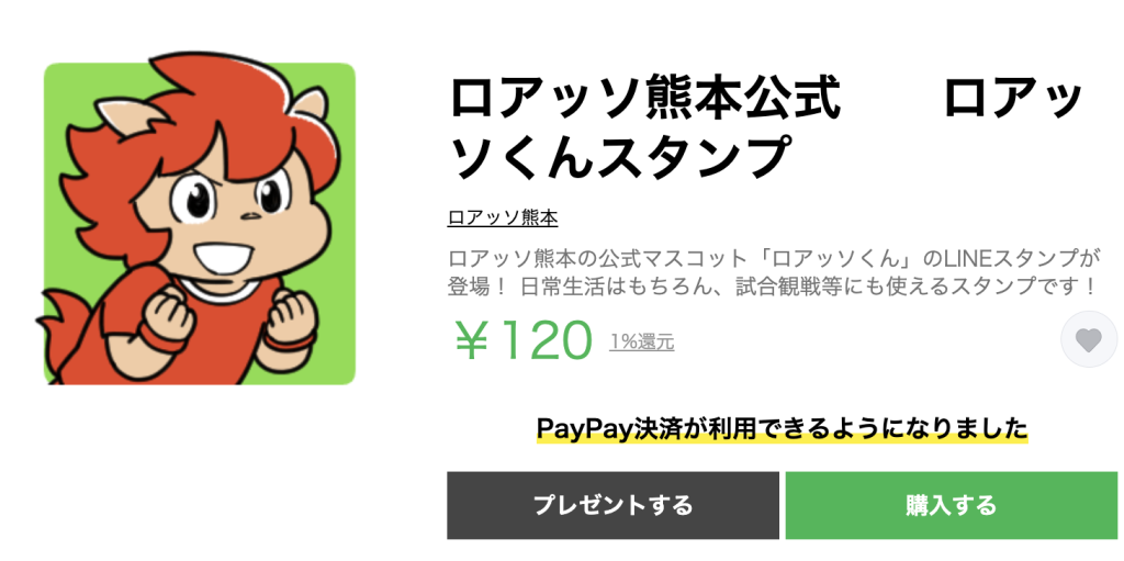 先日ロアッソ熊本のロアッソくんのスタンプがリリースされました🎉