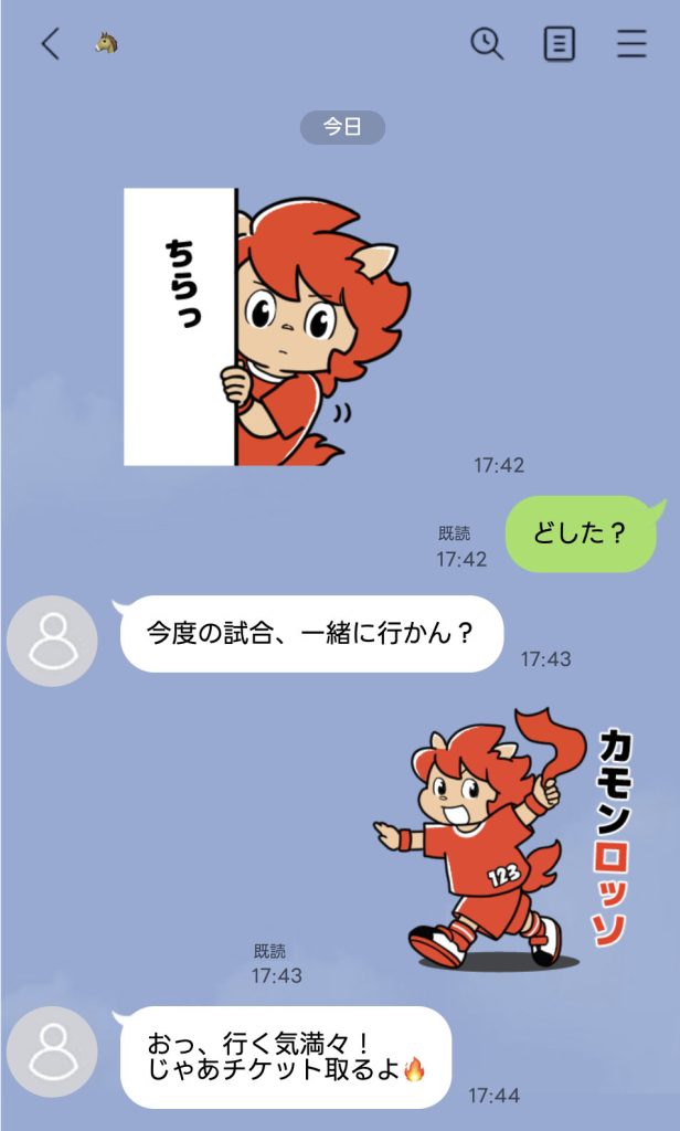 「カモンロッソ」などファン同士で盛り上がるスタンプはもちろん、「ちらっ」や「よろしく」「OK」等、普段使いしやすいスタンプも盛り沢山🔥