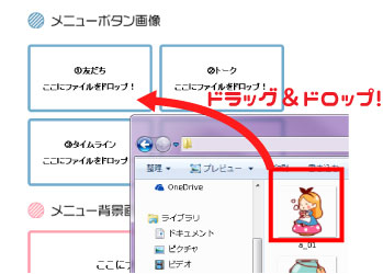 該当ボックスに画像をドラッグ&ドロップ!シミュレート画面上から2番目のプロフィール画像に画像が反映されます。